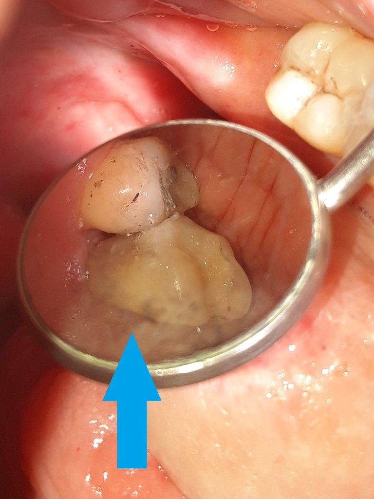 Ο ασθενής επισκέφτηκε τον οδοντίατρό του για τον ετήσιο τυπικό οδοντιατρικό έλεγχο. Η κλινική εξέταση αποκάλυψε μία τερηδόνα ρίζας και προτάθηκε στον ασθενή η εξαγωγή του δοντιού. Ο ασθενής σύμφωνα με τις υποδείξεις των γναθοχειρουργών αρνήθηκε την εξαγωγή του δοντιού του, επισκέφτηκε το ιατρείο μας και μας εξήγησε το ιστορικό του.