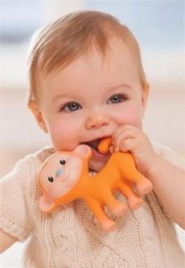 Δακτυλάκι σιλικόνης. Πρόκειται για μία πλαστική μικρή θήκη την οποία ο γονιός τη φοράει στο δείκτη του και μ΄ αυτό τρίβει τα ούλα του παιδιού ανακουφίζοντας το.