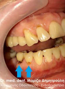 Οι αυχενικές αλλοιώσεις είναι βλάβες που εμφανίζονται στον αυχένα του δοντιού και έχουν τη χαρακτηριστική μορφή του «ξαπλωμένου» μισοφέγγαρου. Στην ουσία πρόκειται για αποτριβές του σμάλτου των δοντιών. Η πιο συχνή αιτία που προκαλεί αυτές τις αποτριβές είναι το συχνό και έντονο / νευρικό βούρτσισμα των δοντιών με σκληρή οδοντόβουρτσα. Ο ασθενής στην προσπάθεια του να καθαρίσει όσο το δυνατόν καλύτερα τα δόντια του, τα τρίβει έντονα προκαλώντας σιγά – σιγά την αποτριβή του σμάλτου των δοντιών. Καθώς ο σμάλτος των δοντιών (αδαμαντίνη) φθείρεται, αποκαλύπτεται μέσα στο στόμα η οδοντίνη του δοντιού (κατώτερο μαλακό τμήμα του δοντιού) και ο ασθενής αρχίζει να παραπονείται στον οδοντίατρο για ευαισθησία στα δόντια.